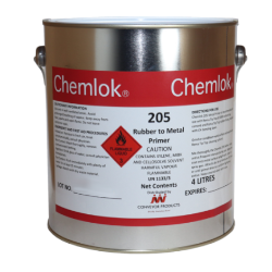 Chemlok 205 bonding agent enhances the adhesion/cohesion strength between the rubber lagging to be applied and the metal surface. It inhibits corrosion in the case of primed metal surfaces that are to be stored for a longer period of time.